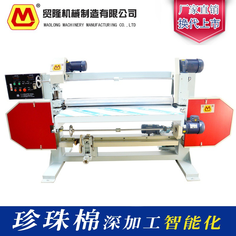 1,此珍珠棉開(kāi)片機(jī)為雙壓棍進(jìn)料設(shè)備,推力更大;